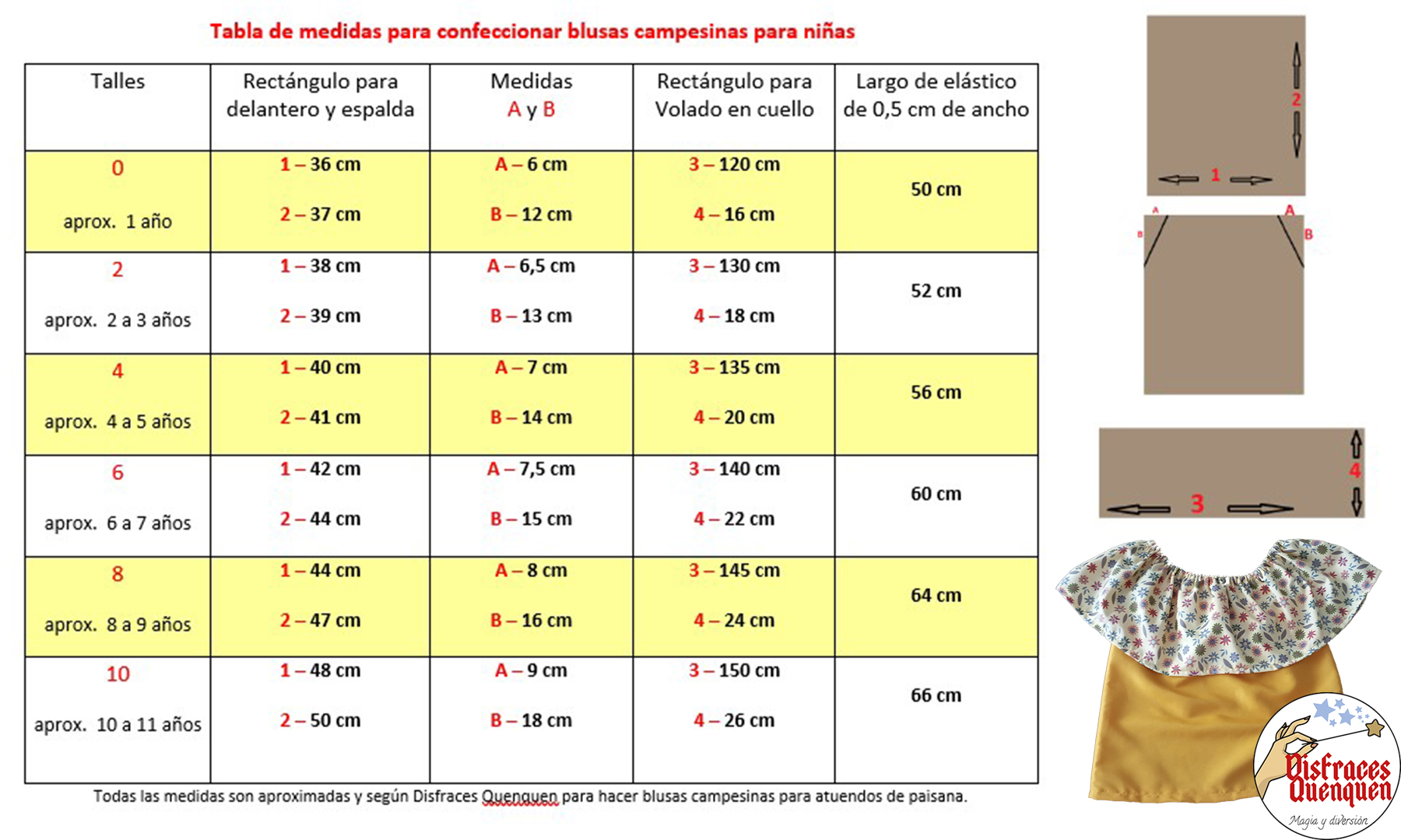 Llego el momento de realizar estas blusas con esta tabla de medidas y el tutorial que encontrarás en el canal de YouTube de Disfraces Quenquen.
