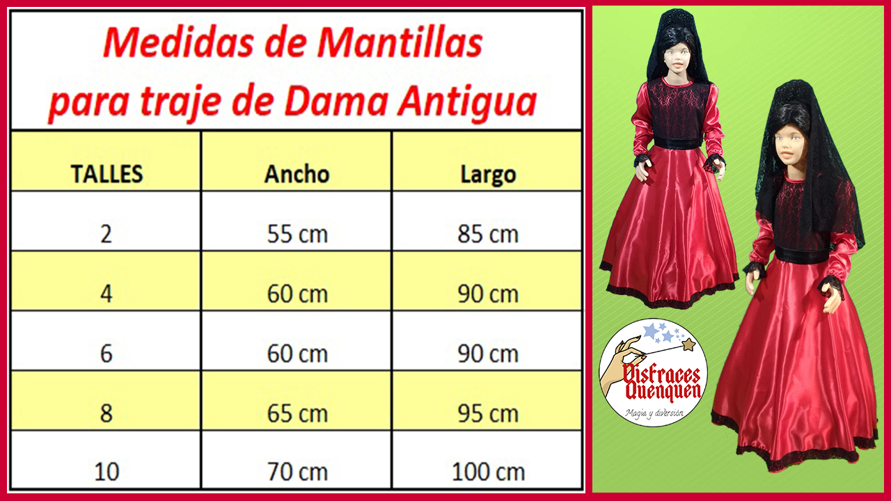 Para completar un atuendo de Dama Antigua de Época Colonial se acostumbra a usar peinetón y mantilla. Te dejo las medidas de estas mantillas.