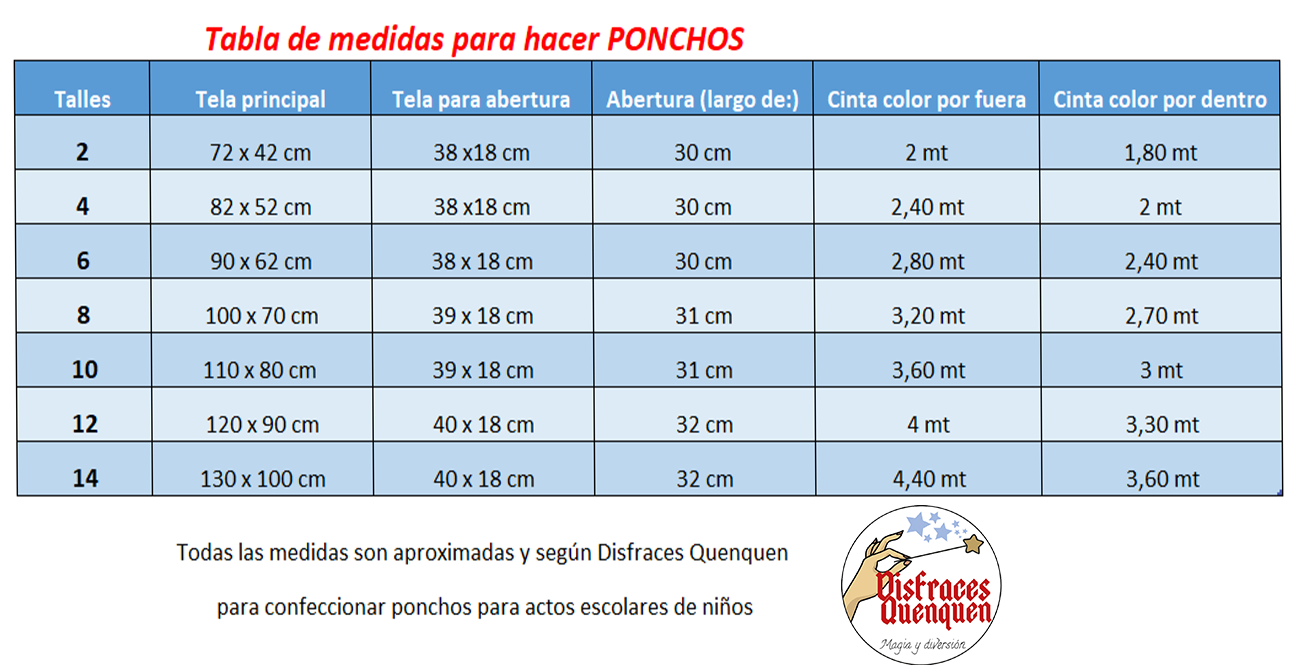 Continuamos con la tabla de medidas para confeccionar estos ponchos.